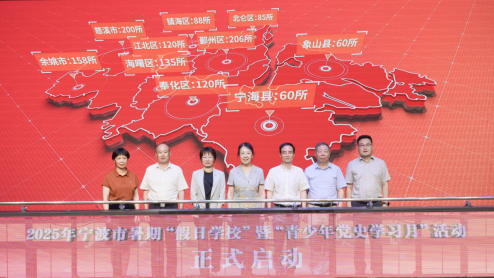 6月30日上午,寧波市暑期“假日學?!遍_班暨“青少年黨史學習月”活動啟動儀式在寧波市鎮海區中心學校舉行,拉開了2025年暑期“假日學?!焙颓嗌倌挈h史學習月活動的序幕。本次活動由寧波市關工委、市文明辦、市委黨史研究室、市教育局、市體育局、共青團寧波市委、市婦聯、市紅十字會聯合主辦。市關工委主任翁魯敏出席并講話,鎮海區委常委、組織部部長石雅潔出席并致辭,市委宣傳部副部長、市文明辦主任童華斌,市關工委副主任林崇建,市委黨史研究室室務會議成員、二級巡視員趙傳斌,團市委副書記萬里,市紅十字會副會長周學群,市關工委專職副主任張建軍等出席啟動儀式。